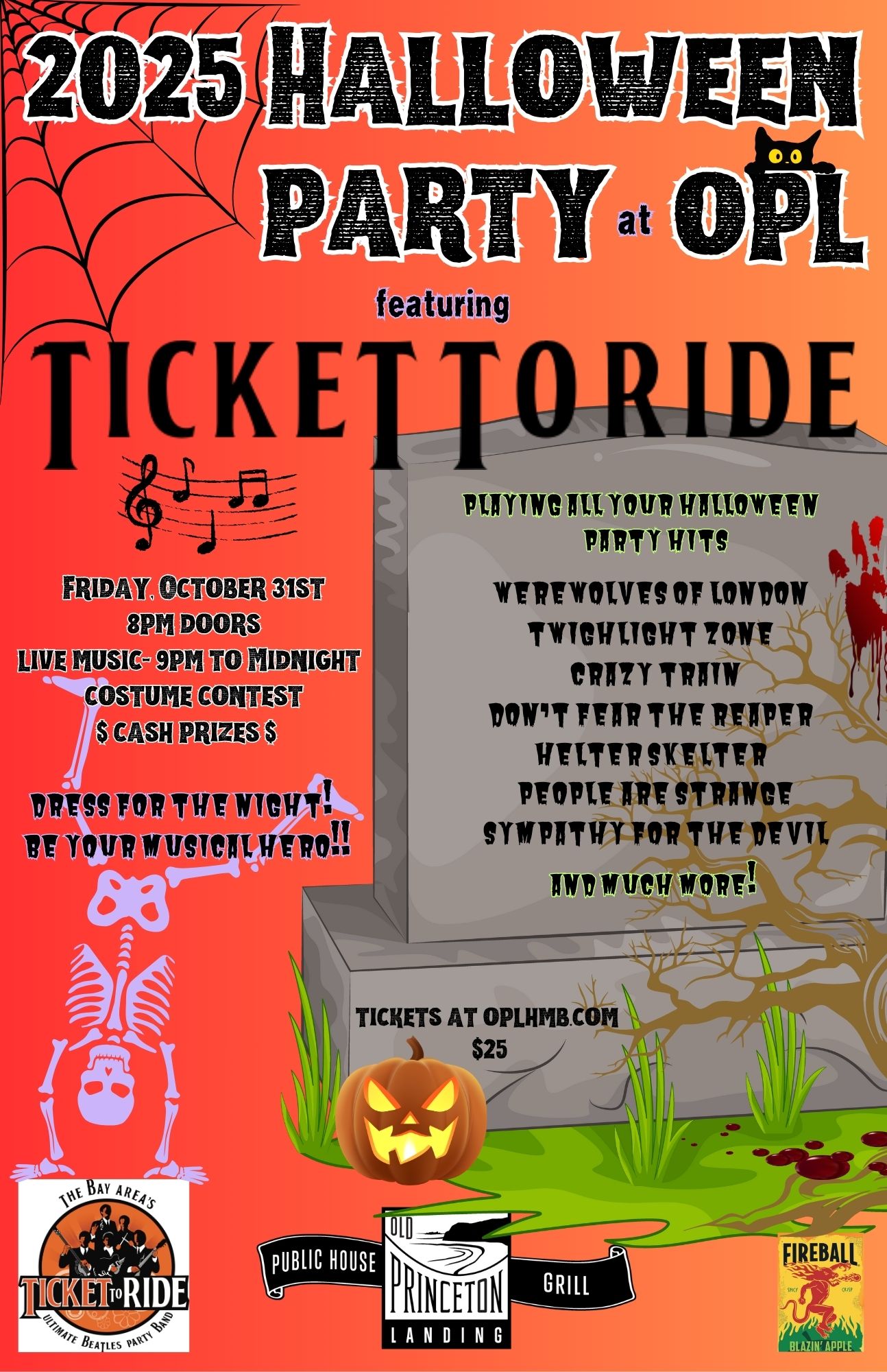 Old Princeton Landing hosting Halloween 2025 featuring Ticket To Ride. They will be playing LIVE all your favorite Halloween party hits!